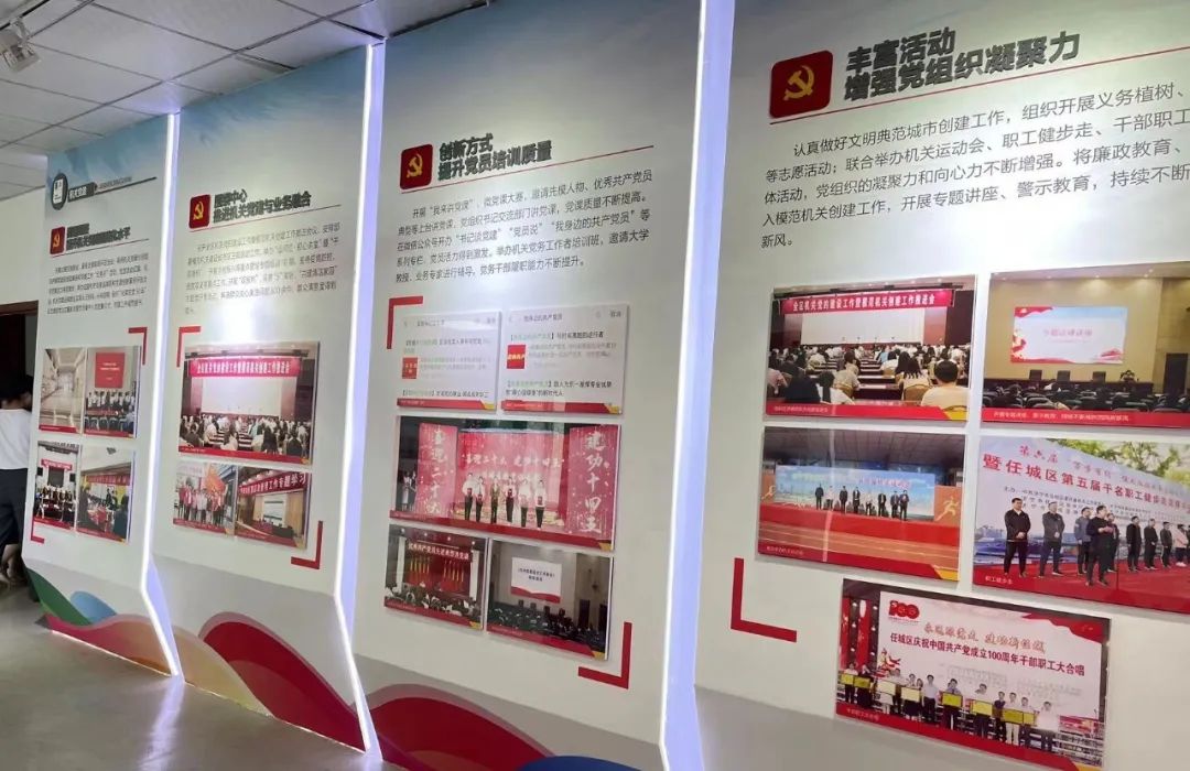 任城區(qū)黨史陳列館含走進(jìn)任城篇、古韻任城篇、紅色任城篇、富強(qiáng)任城篇、幸福任城篇、美麗任城篇及黨的十九大精神專題展覽等七大展廳。其中紅色任城篇和幸福任城篇以“站起來(lái)”“富起來(lái)”“強(qiáng)起來(lái)”“美起來(lái)”等多板塊介紹了中國(guó)共產(chǎn)黨領(lǐng)導(dǎo)人民在革命、建設(shè)和改革各個(gè)歷史時(shí)期所走過(guò)的光輝歷程,在社會(huì)主義現(xiàn)代化建設(shè)不同階段取得的一個(gè)又一個(gè)勝利。